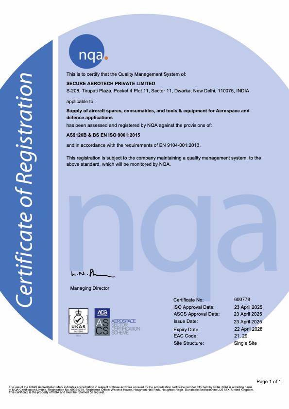 Secure Aerotech is an international supplier of aircraft components and spares for landing gear rotables, airframe, spares, hydraulics, engine accessories, electrical items, instruments, avionics and other materials for fixed wing and helicopter. In addition to the normal supply of parts, we have links with numerous major distributors with immediate stock at competitive prices. This enables us to draw from their stocks and reduce the lead time of spare parts for our customers. With a global footprint, we bring the benefit of our relationship with OEMs, distributors, and repair shops to our customers, thus offering cost optimisation and shorter lead time.